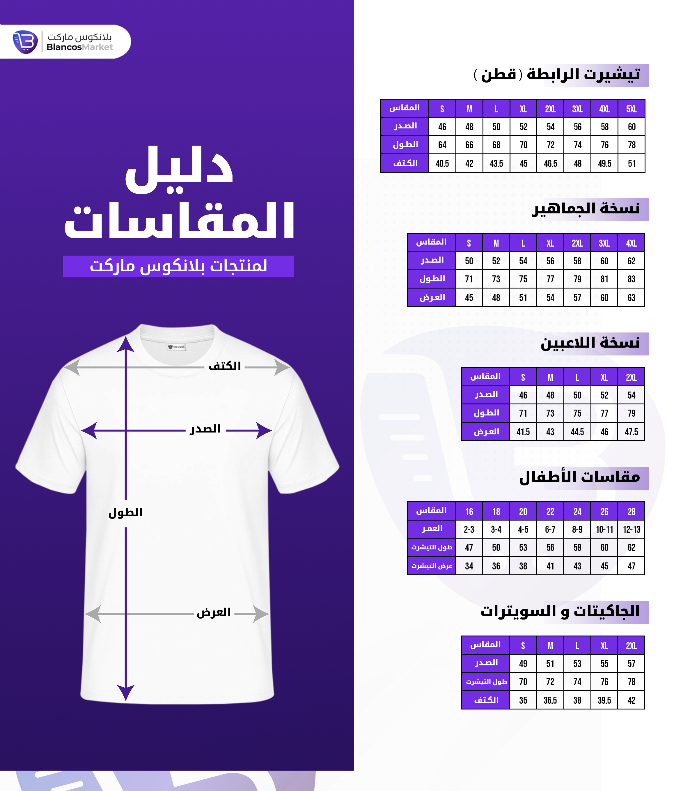 بالنسبة للشورت يتوفر فقط بمقاسات S - 2XL وأي مقاس تيشيرت اكبر (3XL - 4XL) سيتم احضار شورت 2XL